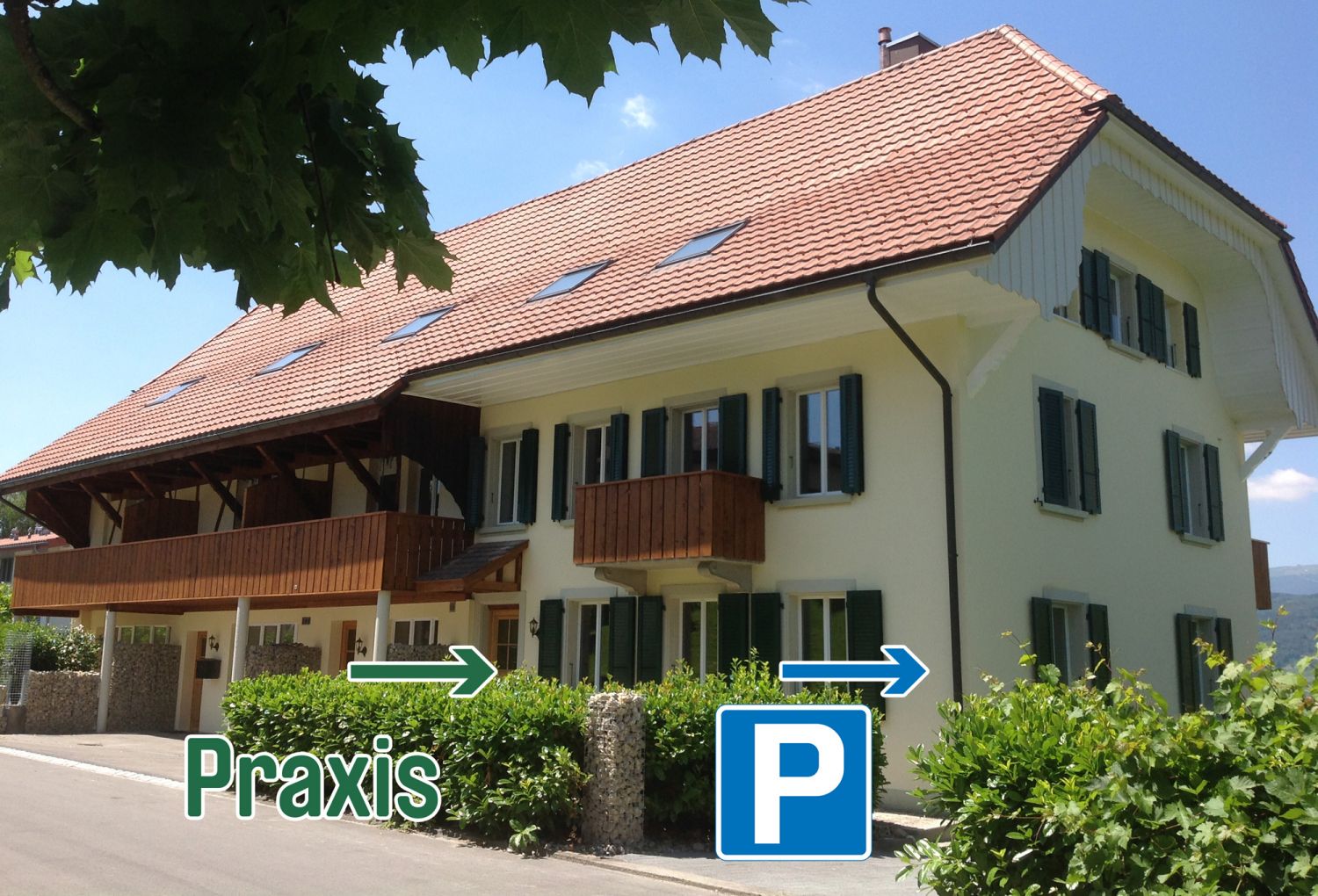 Die Praxis ist zu Fuss in 5 Gehminuten ab asm Station "Mörigen" erreichbar.
